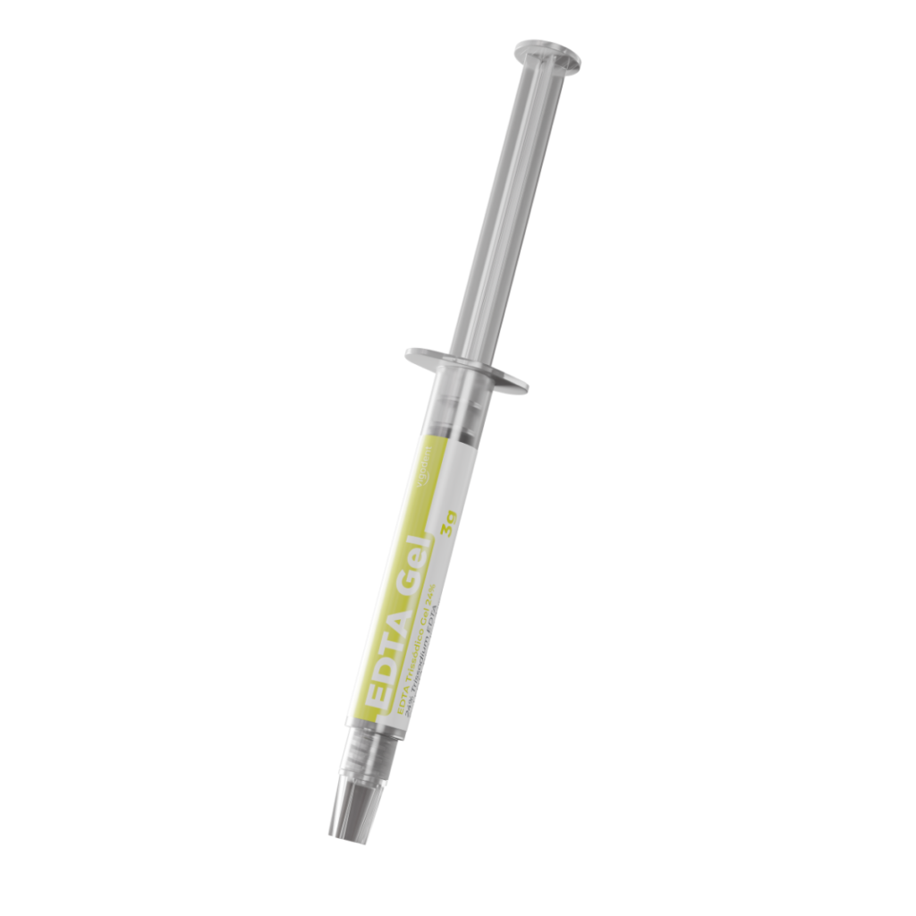 El Gel EDTA Trisódico 24% se utiliza para ampliar los conductos radiculares, eliminar las capas de barrillo dentinario y preparar la pared dentinaria para la adhesión de materiales de obturación. Fácil de aplicar y listo para usar, Trisodium EDTA Gel tiene una viscosidad ideal, evitando el escurrimiento.