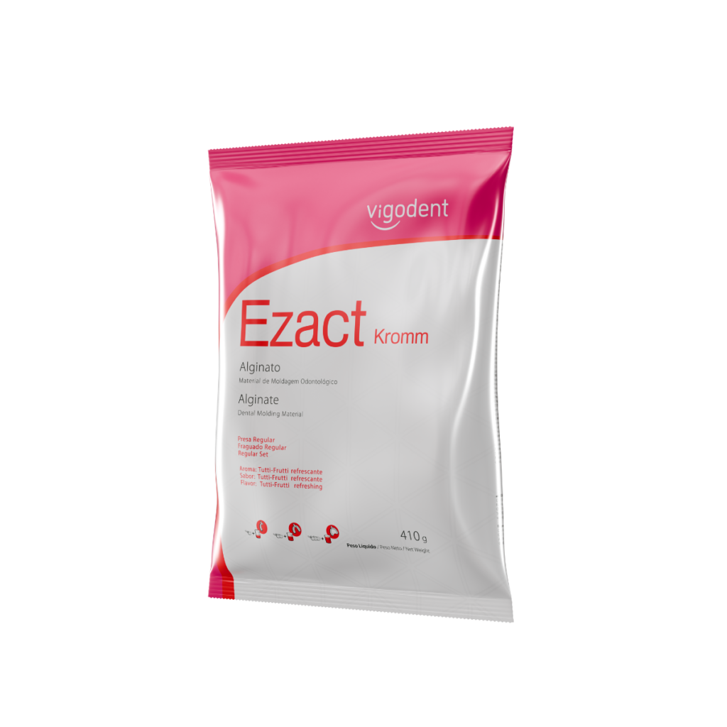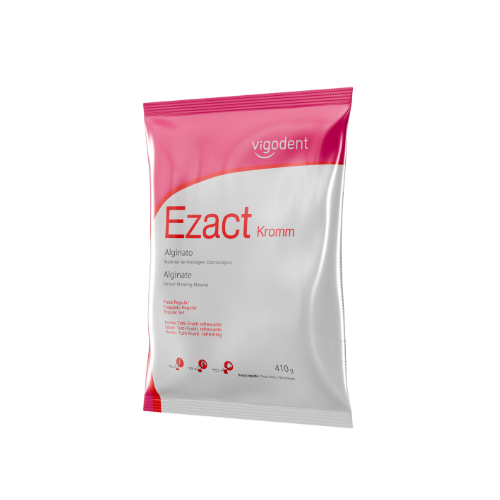 Ezact Kromm es un alginato cromático de fraguado regular (tipo II) con alta reproducción de detalles gracias a su gran compatibilidad con los yesos.