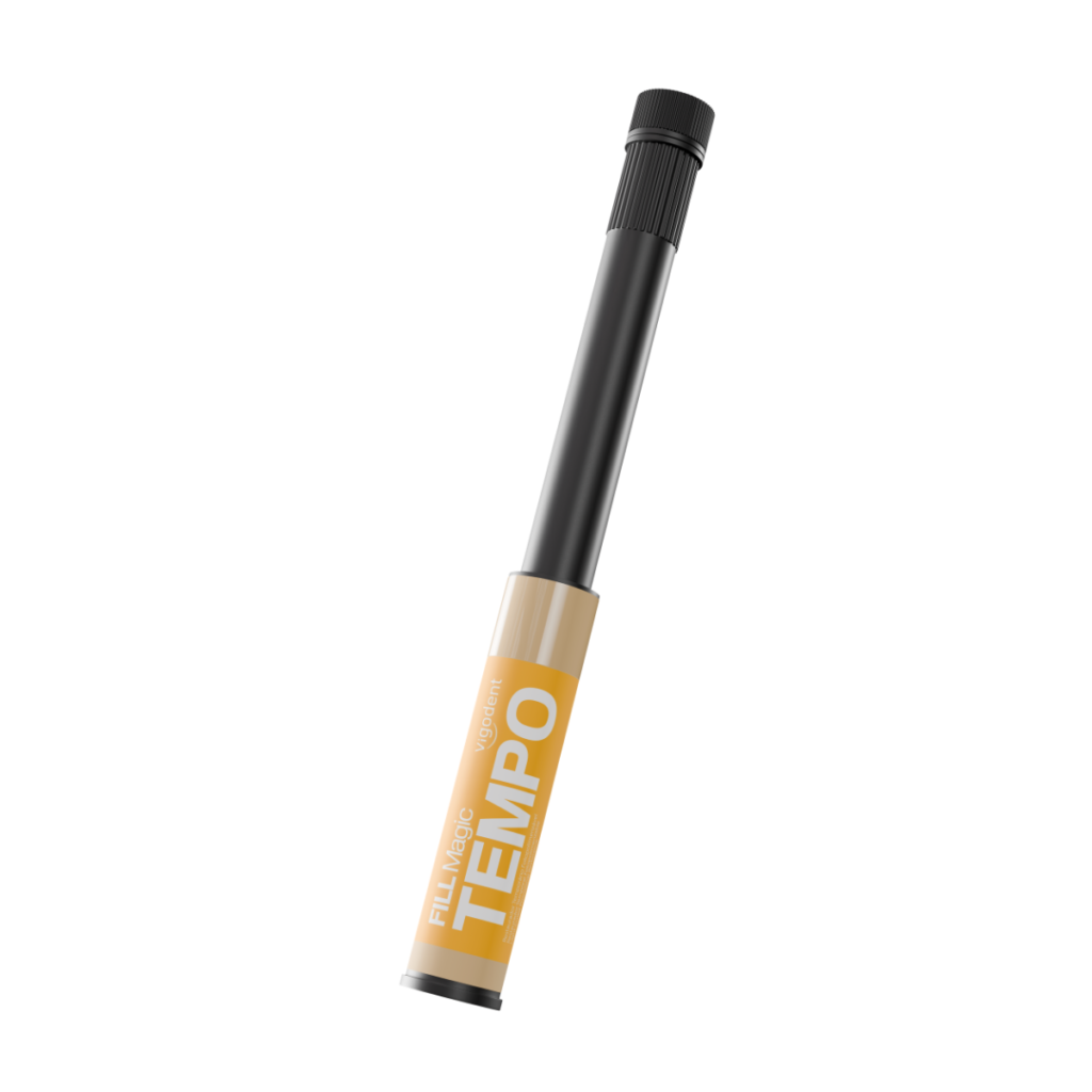 Fill Magic Tempo es fotopolimerizable, a base de resina de dimetacrilato y no contiene Eugenol.