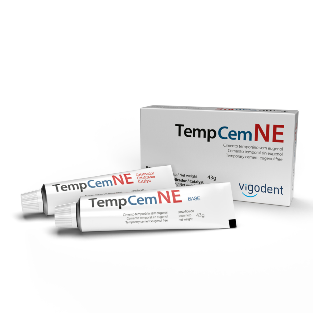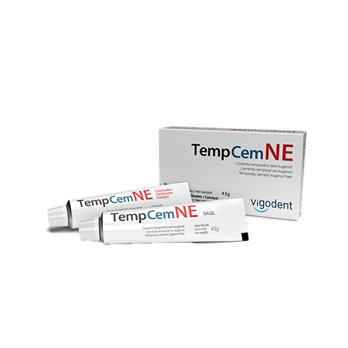 TempCem NE es un cemento provisional sin eugenol de gran fluidez, excelentes propiedades mecánicas, fácil de manipular y retirar. No interfiere en el ajuste oclusal y tiene un color blanco que aumenta la versatilidad de uso del material.